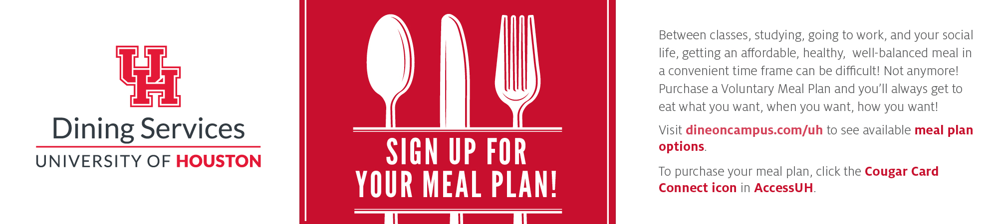 Auxiliary Services at the University of Houston manages residential and retail food service; catering; vending services; retail leasing; merchandising; course materials; and the Cougar Textbook Access Program. We cater to students, faculty, staff, alumni, and visitors. As an auxiliary operation, we are financially independent and rely on revenues from our programs to cover operational and capital expenditures.4200 Martin Luther King Blvd, Suite 103, Houston, TX 77204-5013 | 832-842-9053 | auxiliaryservices@uh.edu