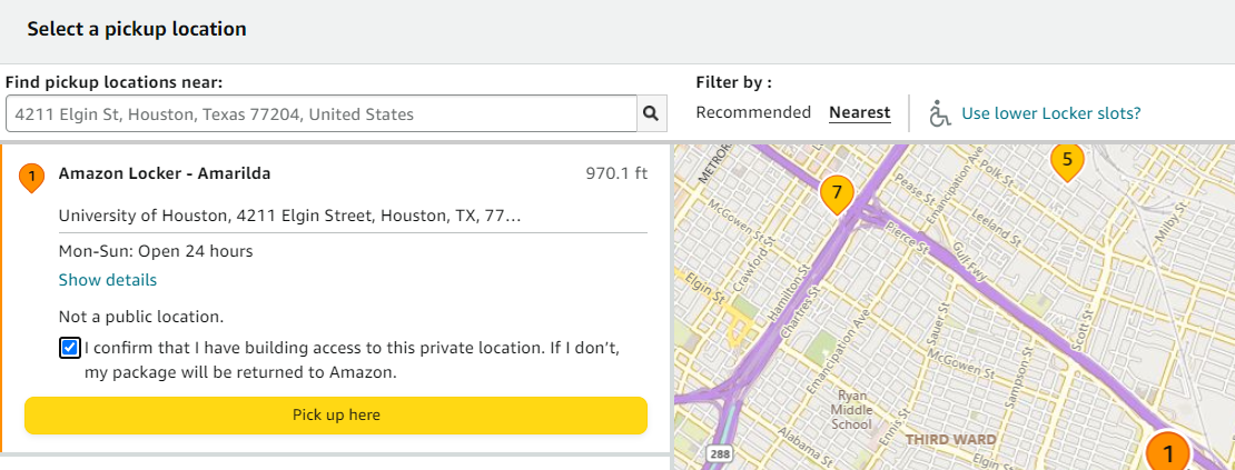 Amazon Locker – Creativity or Amazon Locker – Amarilda during checkout and check the confirmation box.