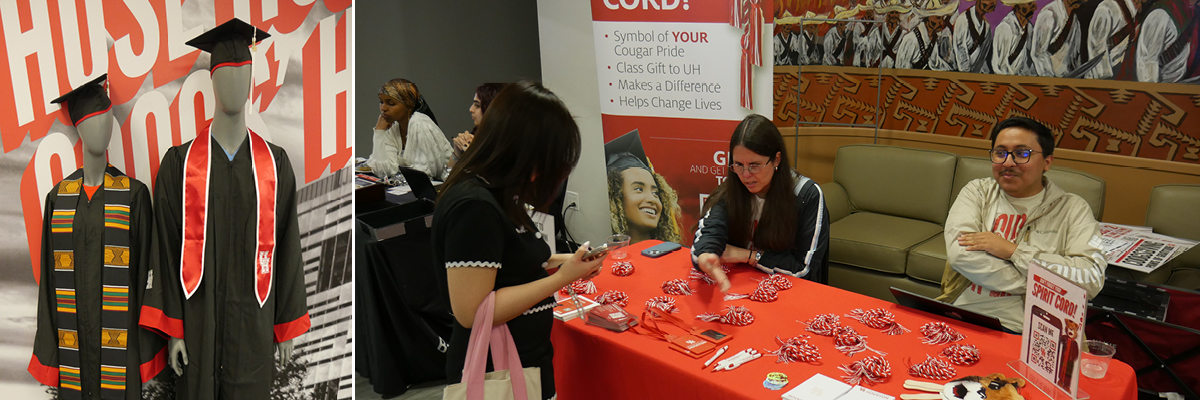 On November 20, the first floor of the Campus Store transformed into a festive hub for graduating Coogs. Students picked up their caps and gowns, grabbed commencement tickets, decorated their caps at a creative station, and collected spirit cords, all while soaking in the excitement of their upcoming milestone.