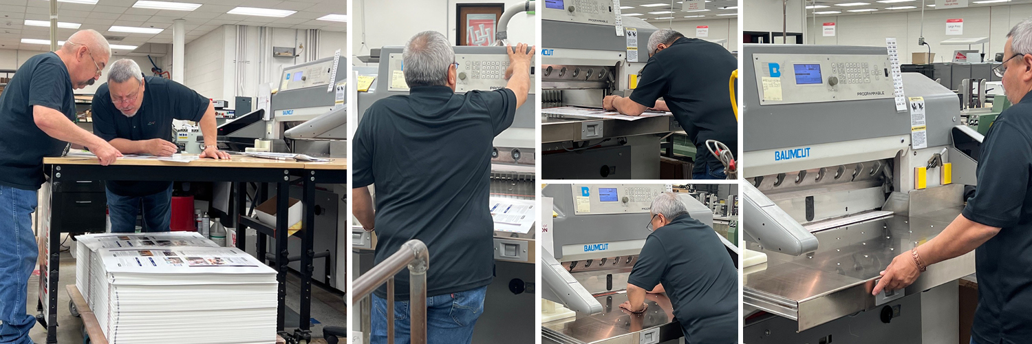 Finished brochures were randomly checked for proper page alignment — especially where