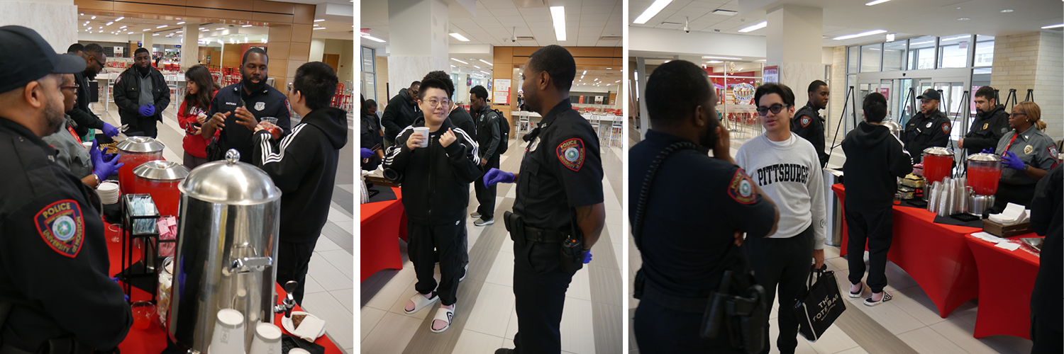 Talking with students and sharing campus safety information is at the heart of every Coffee With a Cop event hosted by the University of Houston Police Department—and the first event of the year delivered exactly that.