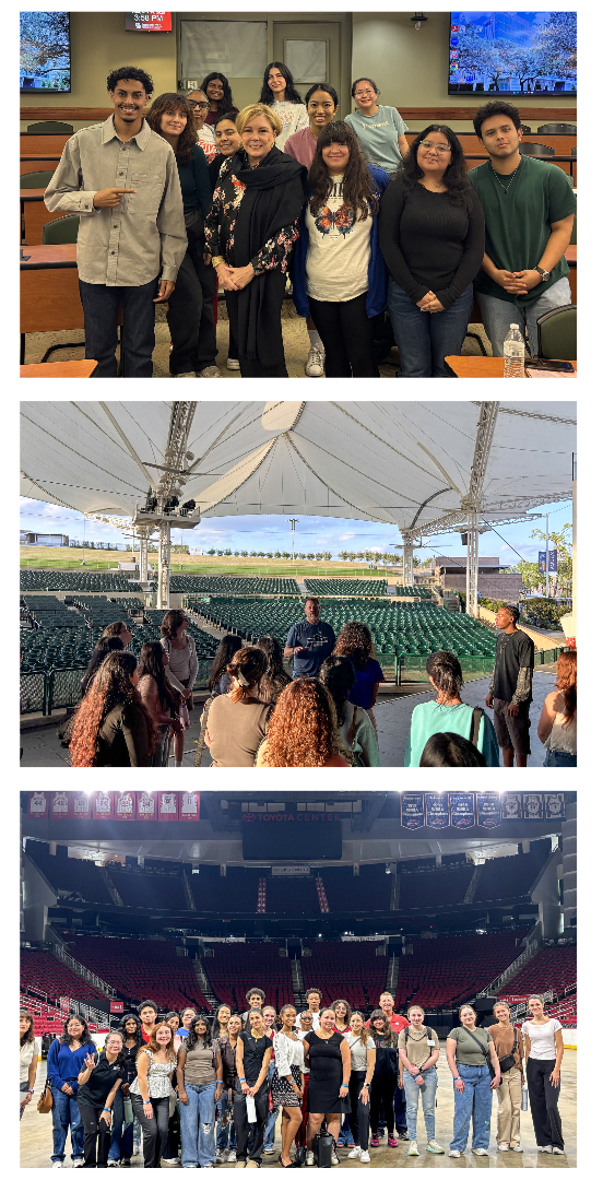 “This field includes a wide array of departments and disciplines, and I believe that providing students with the chance to tour venues and engage with industry professionals shows them the complexities involved in executing games and events within our venues,” said Leah Mastaglio, the vice president of area operations and the assistant general manager of the Houston Rockets, Toyota Center.