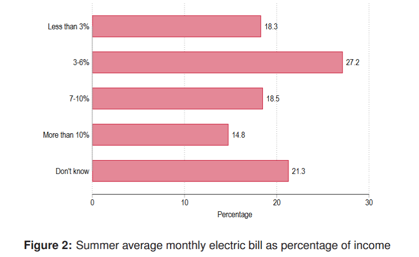 - Nearly 45% of Texans pay more than $200 per month for electricity, and 33% spend 7% or more of their household income on summer electricity—above the high-burden threshold.