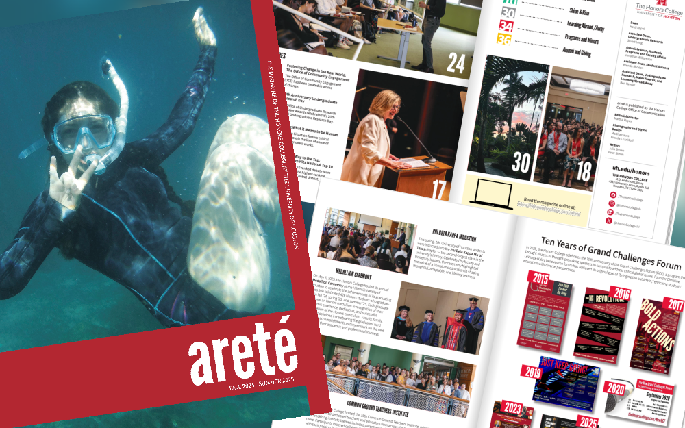 The latest edition of Areté, the annual Honors College magazine, is now available. This year’s issue highlights student achievements, faculty scholarly news, and the innovative work shaping our community.