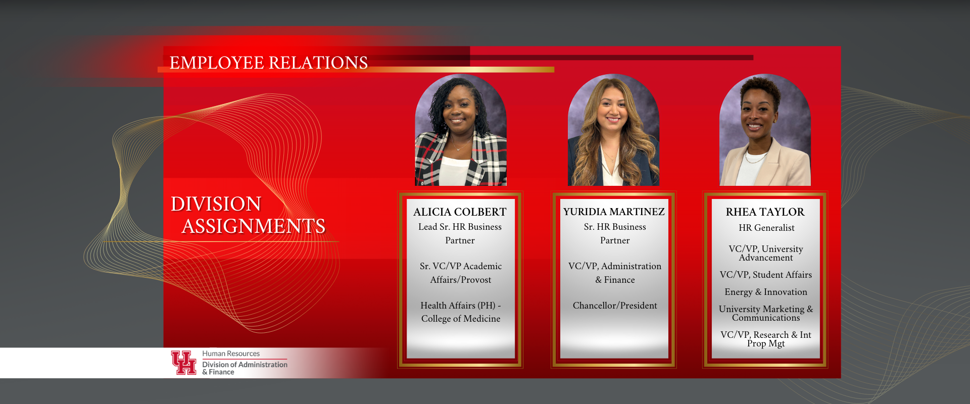 The HR Business Partners are HR professionals who work closely with an organization's senior leaders in order to develop an HR agenda that closely supports the overall strategic goals of the University of Houston. They are also committed to providing direction and guidance to all levels of the divisional units by analyzing, recommending, developing, and administering HR programs, plans, and procedures in a consistent manner. This also includes advising and collaborating with both management and staff regarding resolution of various issues/concerns; and coordinating all activities related to fair employment practices, laws, and regulations.