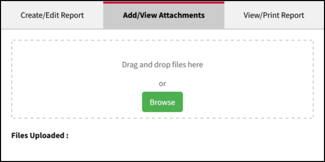Attachments may be used to upload files relevant to the report. These files may be viewed in the system and are linked in generated reports; however, the contents of the attachments are not included in the reports.