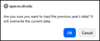 - Use with care! This is a destructive operation that will replace any items you have already entered for the currently selected report and year.