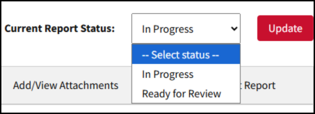 - In Progress: This status indicates that the report is being worked on. This is the default status that is automatically set once you create an item for a new report.