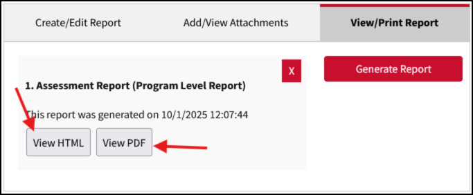 Click the “Generate Report” button to create a new report based on the currently saved data for the currently selected college, department or program.
