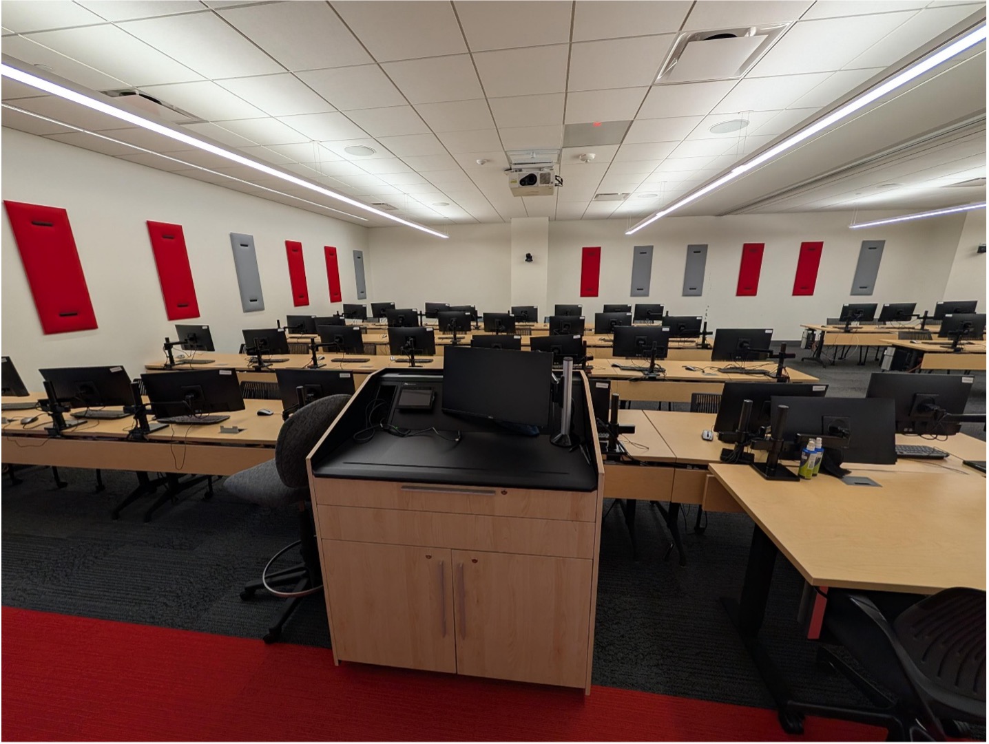 Capacity: 32 Straight-back chairs, 32 desktops