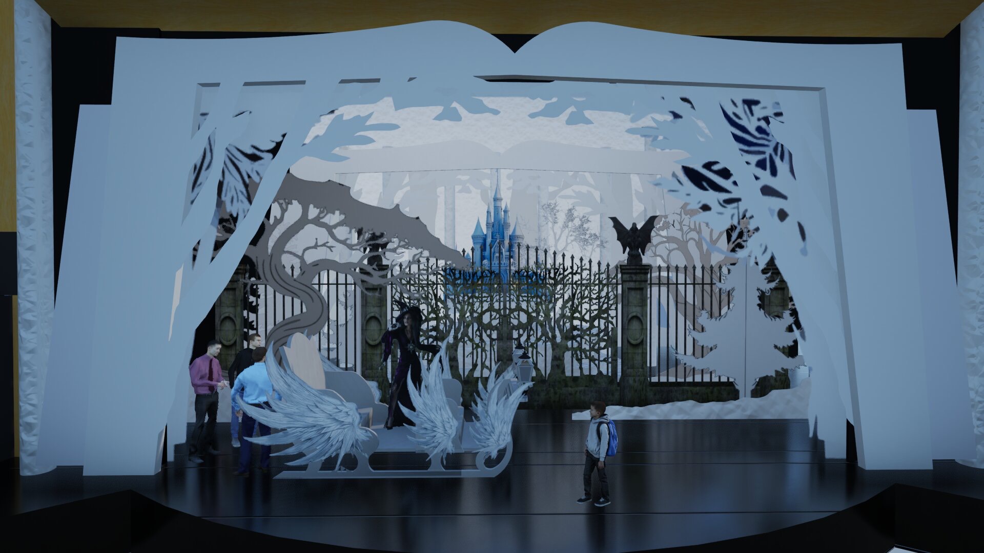 “This design is about transformation—both visual and emotional,” says Vintu. “Each scenic element invites the audience to cross the threshold with the characters and step into a world where magic, memory, and myth coexist.”