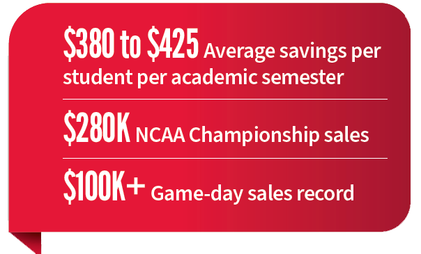 Driving Student Savings & Retail GrowthThe Cougar Textbook Access Program (CTAP) reached 83.1% undergraduate participation in fall 2025, delivering $65.9M in student savings since fall 2023. Merchandise expansion, including premium brands and Houston Blue items, fueled record-breaking sales during major athletic events. |