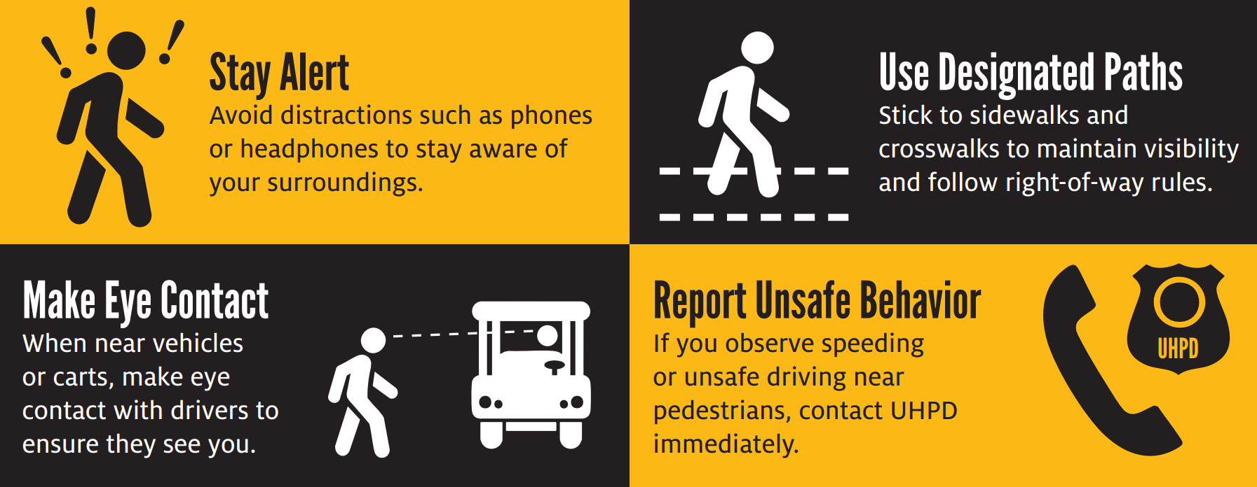 If you observe speeding or unsafe driving near pedestrians, contact UHPD immediately.