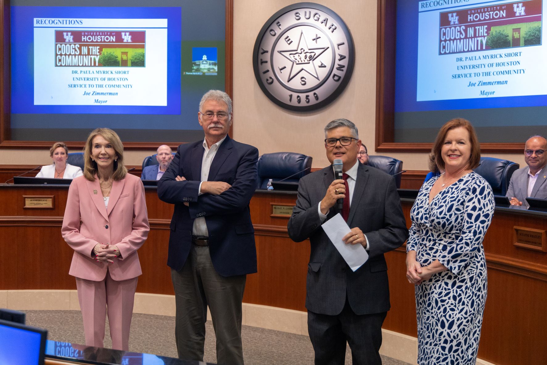 “We recognize your many accomplishments but none more so than what you’ve done for UH at Sugar Land and the city of Sugar Land,” Zimmerman said.