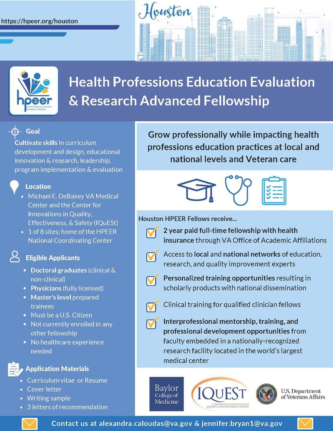 - VA Postdoctoral Fellowship: Health Professions Education Evaluation & Research Advanced Fellowship